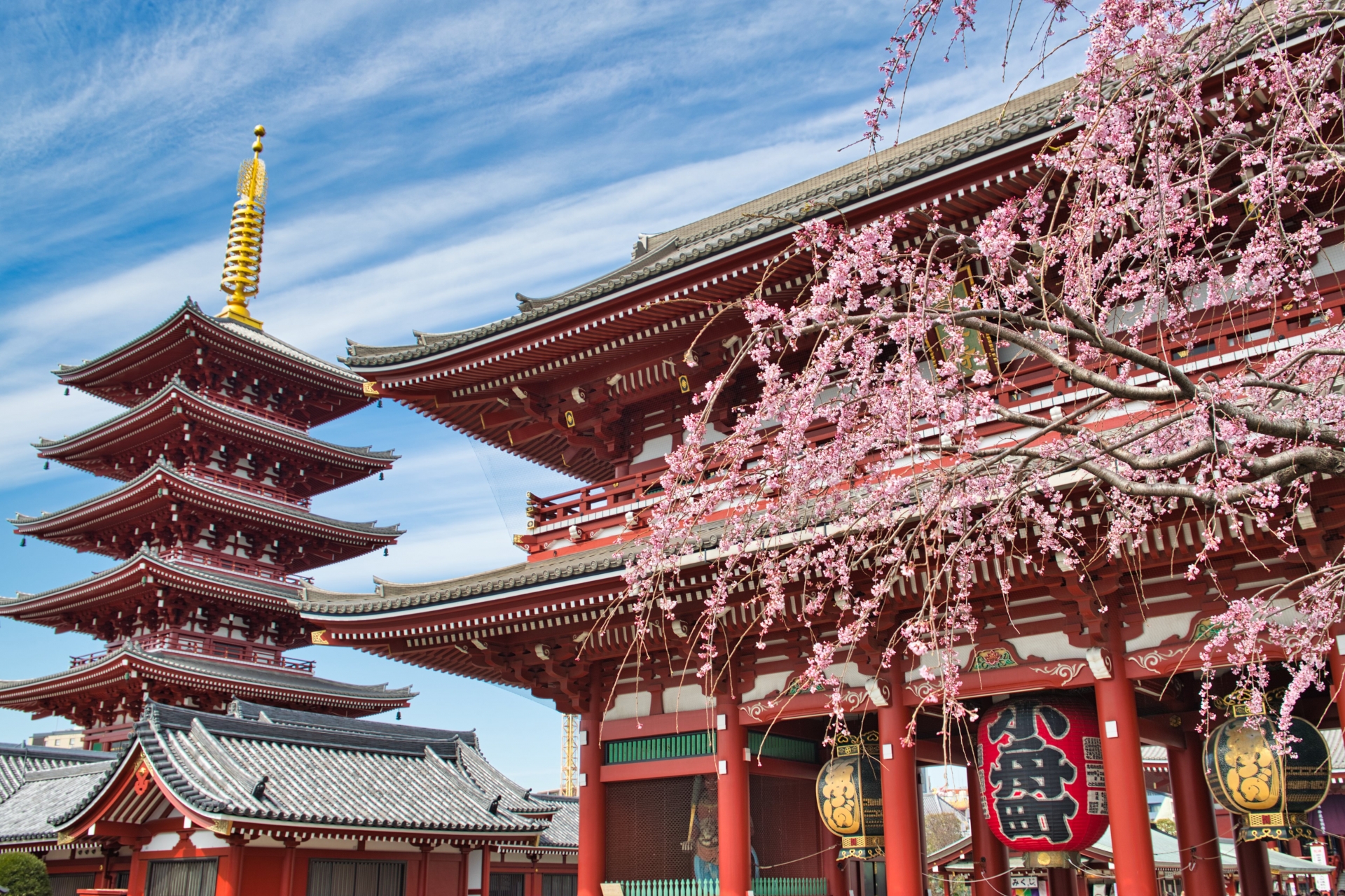 浅草寺・仲見世通り|五重塔×桜の和の風景